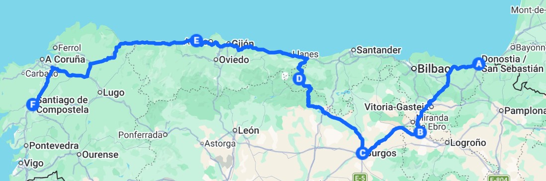 Travelling across northern Spain on some very scenic roads, our destination is Santiago de